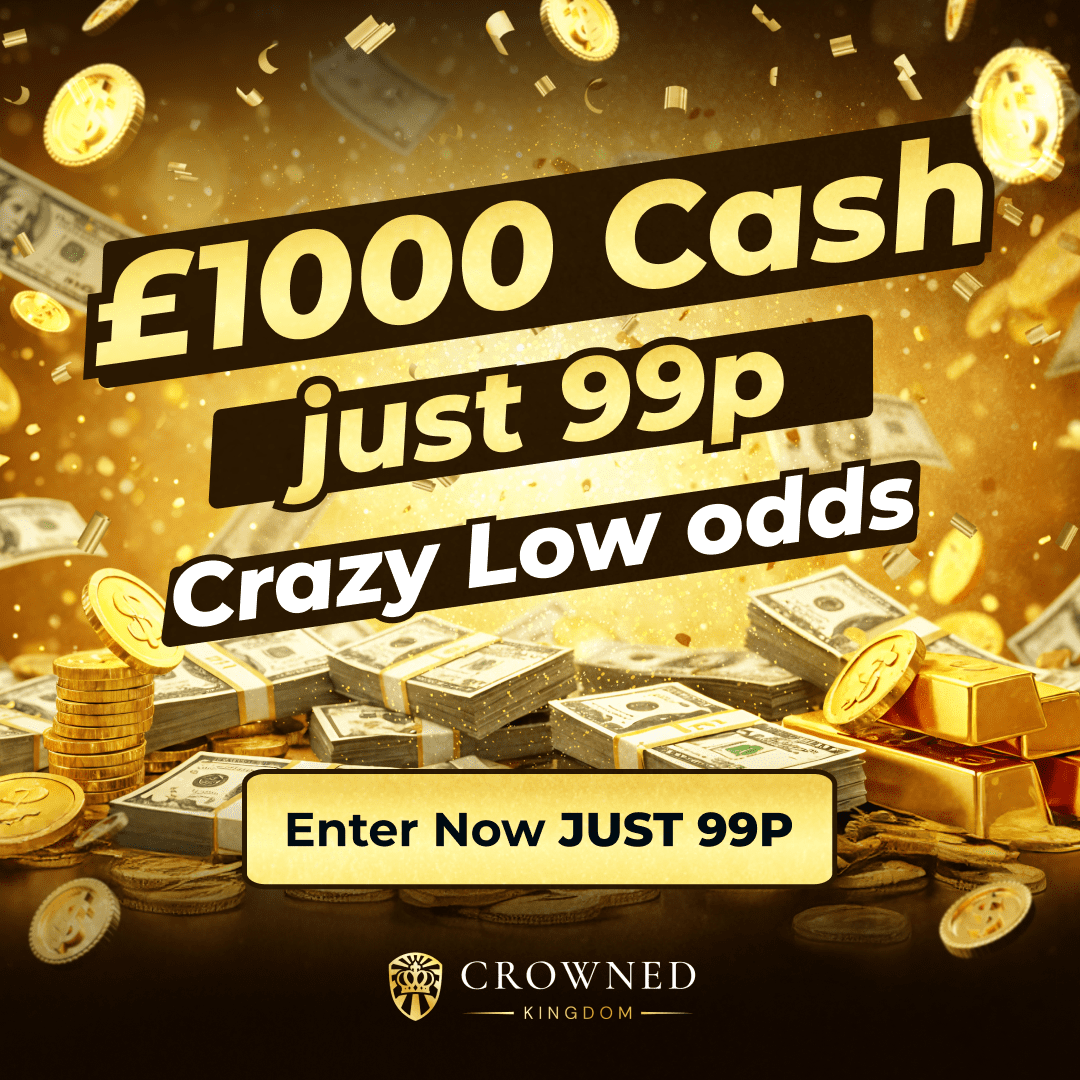 The live draw will take place on the CROWNED KINGDOM ENTERTAINMENT LTD Facebook page using Google’s random number generator to select the winning ticket number from all Entrants.